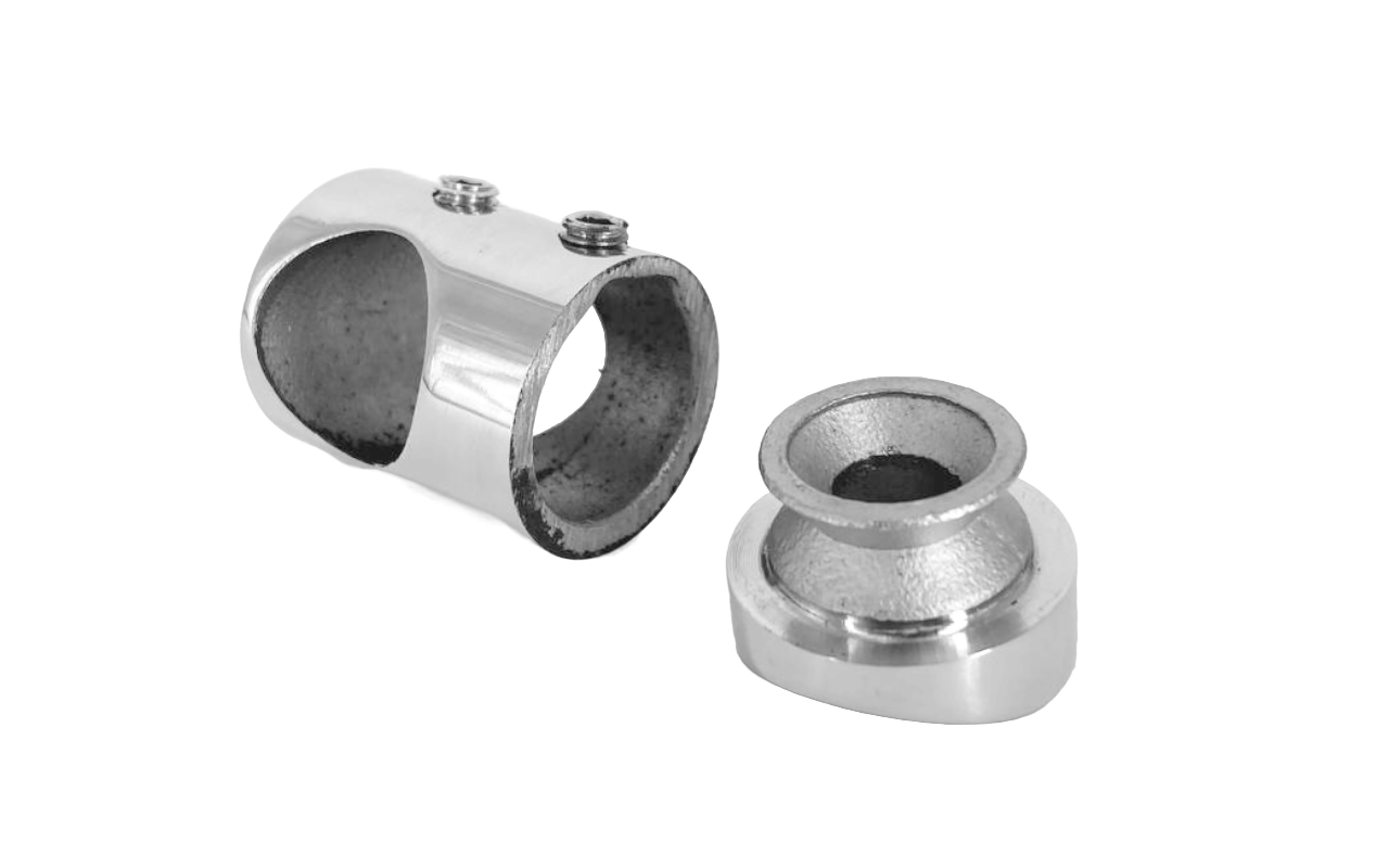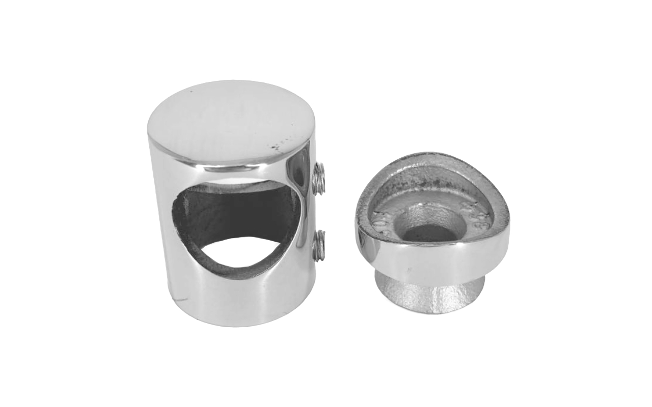 Наконечник палец с алюминиевой системой фиксации на стойке Ø38.1х1.5 мм, регулируемым ложементом под поручень Ø50.8 мм, полированный, литой, нержавеющий (AISI 304) k204 купить в Нижнем Новгороде