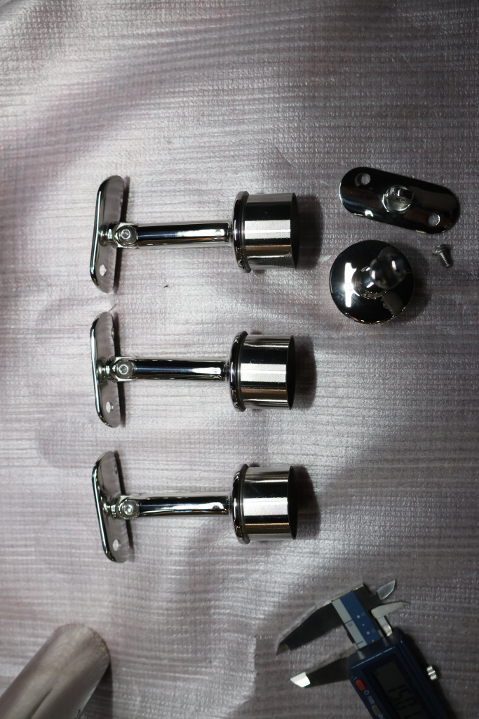 Предназначен для стойки диаметром Ø38.1 мм (k819, k849) под поручень Ø50.8 мм. Деталь с регулируемым ложементом и отверстиями под саморезы. Можно крепить как на сварку, так и на специальный клей (Ф-1105, Ф-1106).