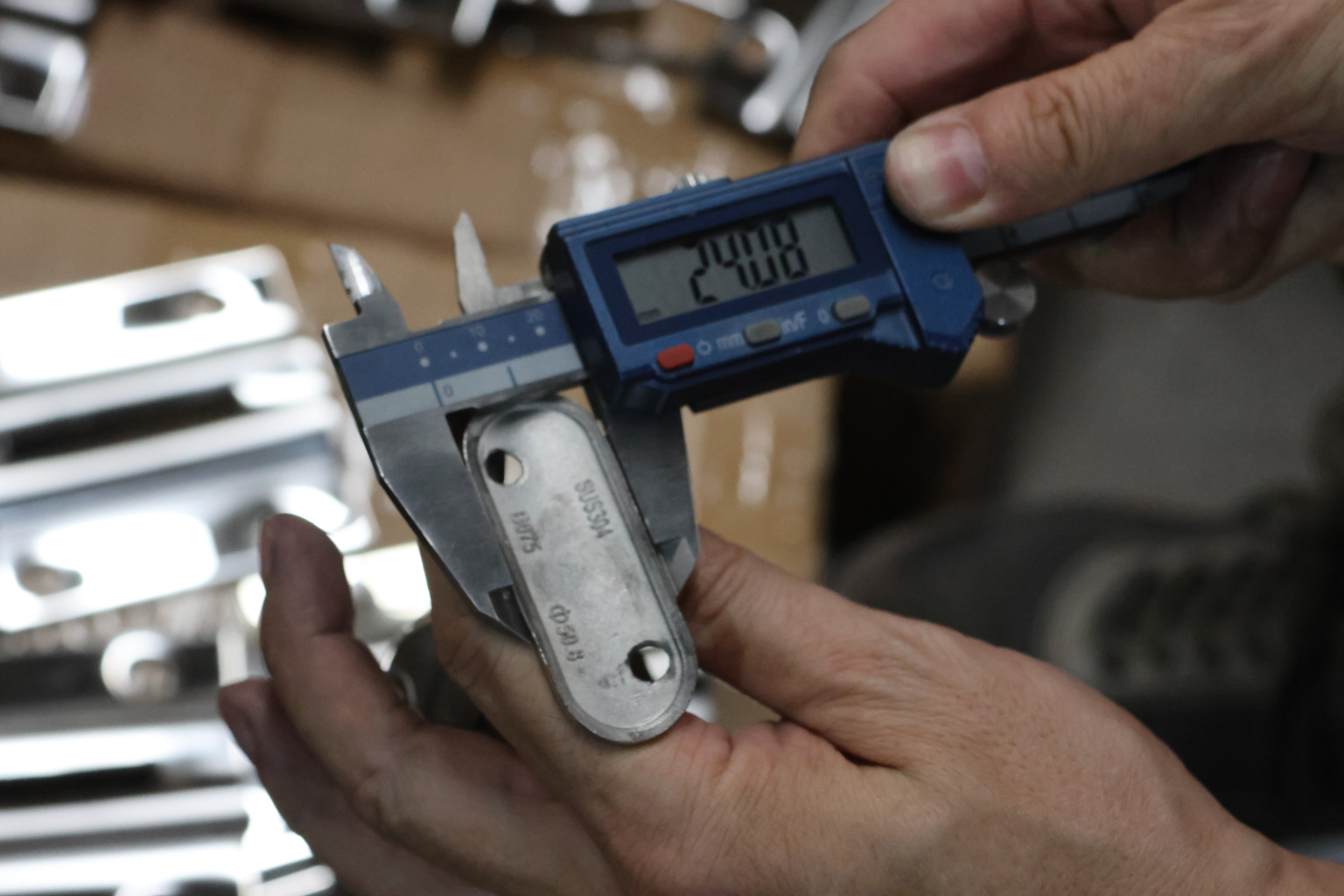 Наконечник палец с алюминиевой системой фиксации на стойке Ø38.1х1.5 мм, регулируемым ложементом под поручень Ø50.8 мм, полированный, литой, нержавеющий (AISI 304) k204 купить в Нижнем Новгороде