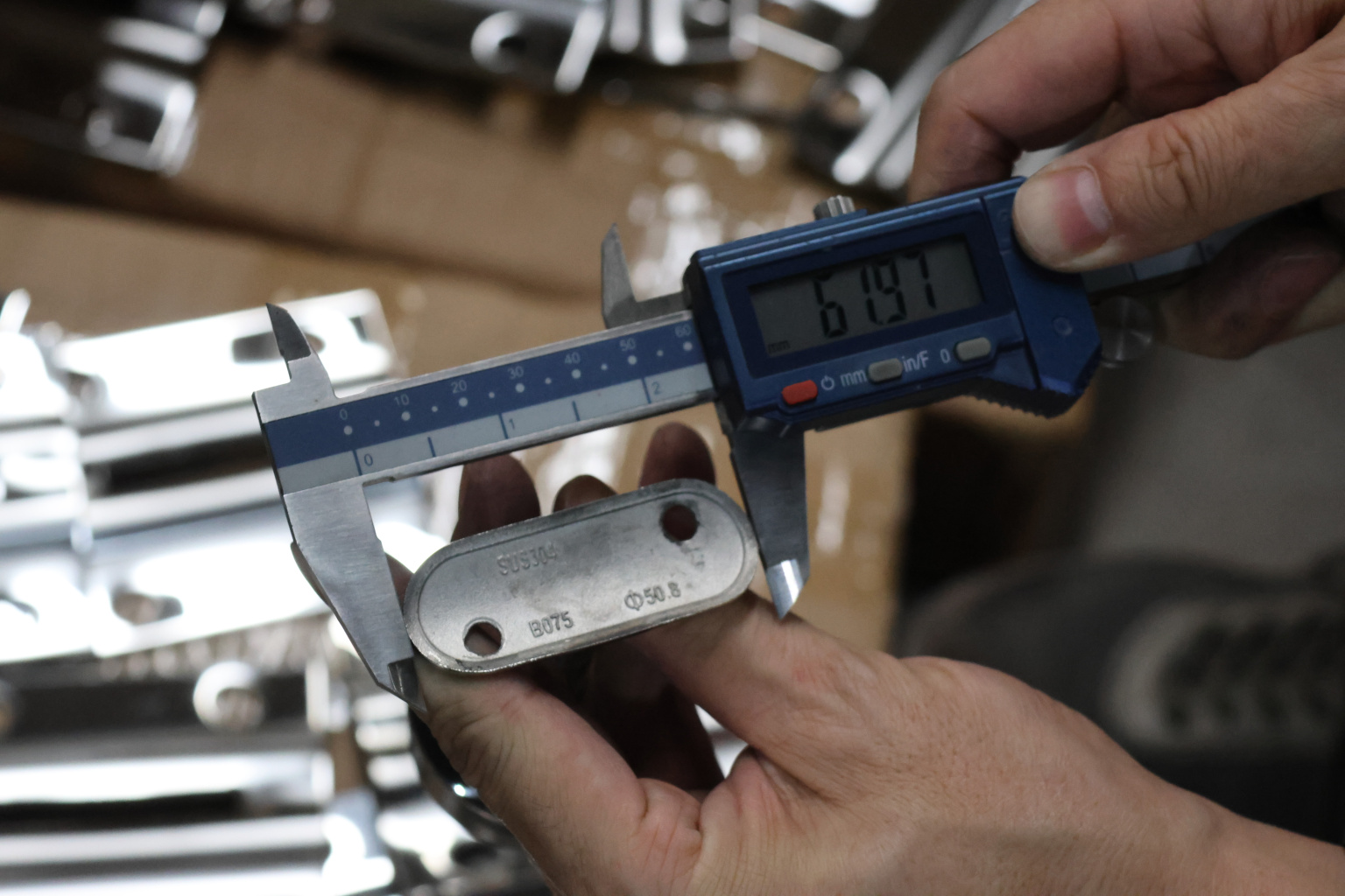 Наконечник палец на стойку из профильной трубы 40х40 мм, с регулируемым ложементом под поручень Ø50.8 мм, полированный, литой, облегченный нержавеющий AISI 304 k239-3 купить в Нижнем Новгороде