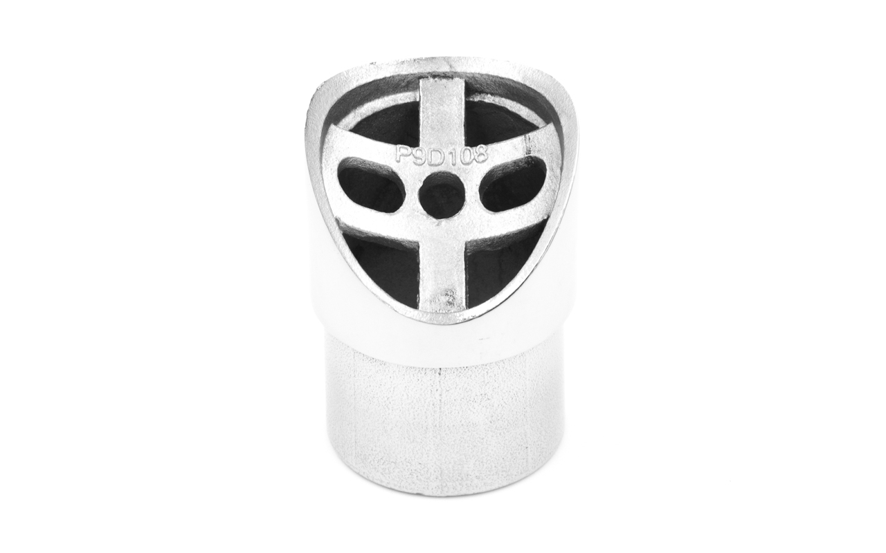Наконечник седловина косая 30° на стойку Ø38.1 мм, под поручень Ø38.1 мм, литая, полированная, AISI 304, k045-2