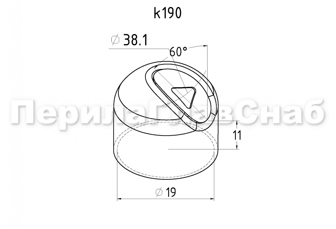 Наконечник штампованный (СПС) прямой 90° на трубу Ø19 мм, для поручня Ø38.1 мм, полированный, нержавеющий, 600 Grit, AISI 304, k191 купить в Нижнем Новгороде
