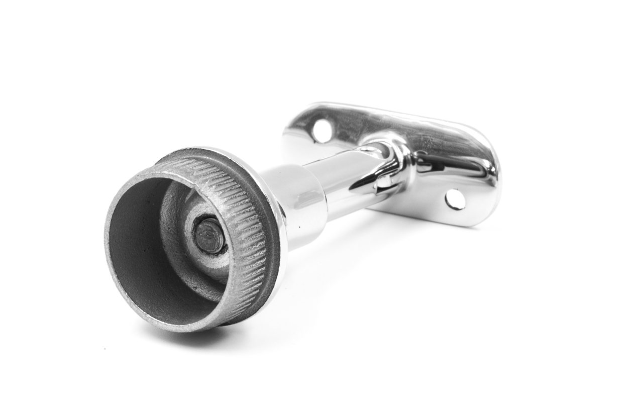 Наконечник регулируемый по высоте на стойку Ø38.1х1.5 мм, с регулируемым ложементом под поручень Ø50.8 мм. Деталь литая, полированная, нержавеющая. Марка детали - AISI 304