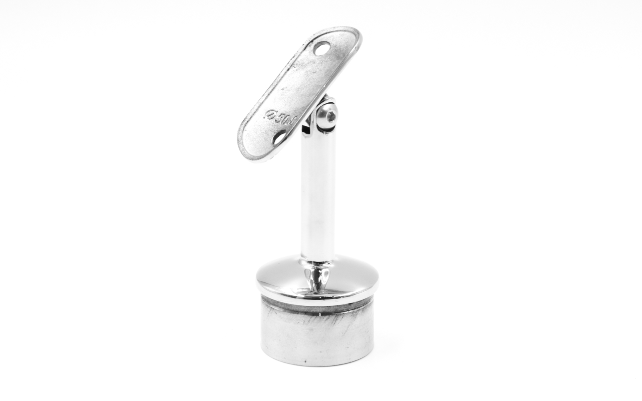 Наконечник палец с алюминиевой системой фиксации на стойке Ø38.1х1.5 мм, регулируемым ложементом под поручень Ø50.8 мм, полированный, литой, нержавеющий (AISI 304) k204 купить в Нижнем Новгороде