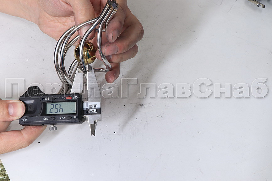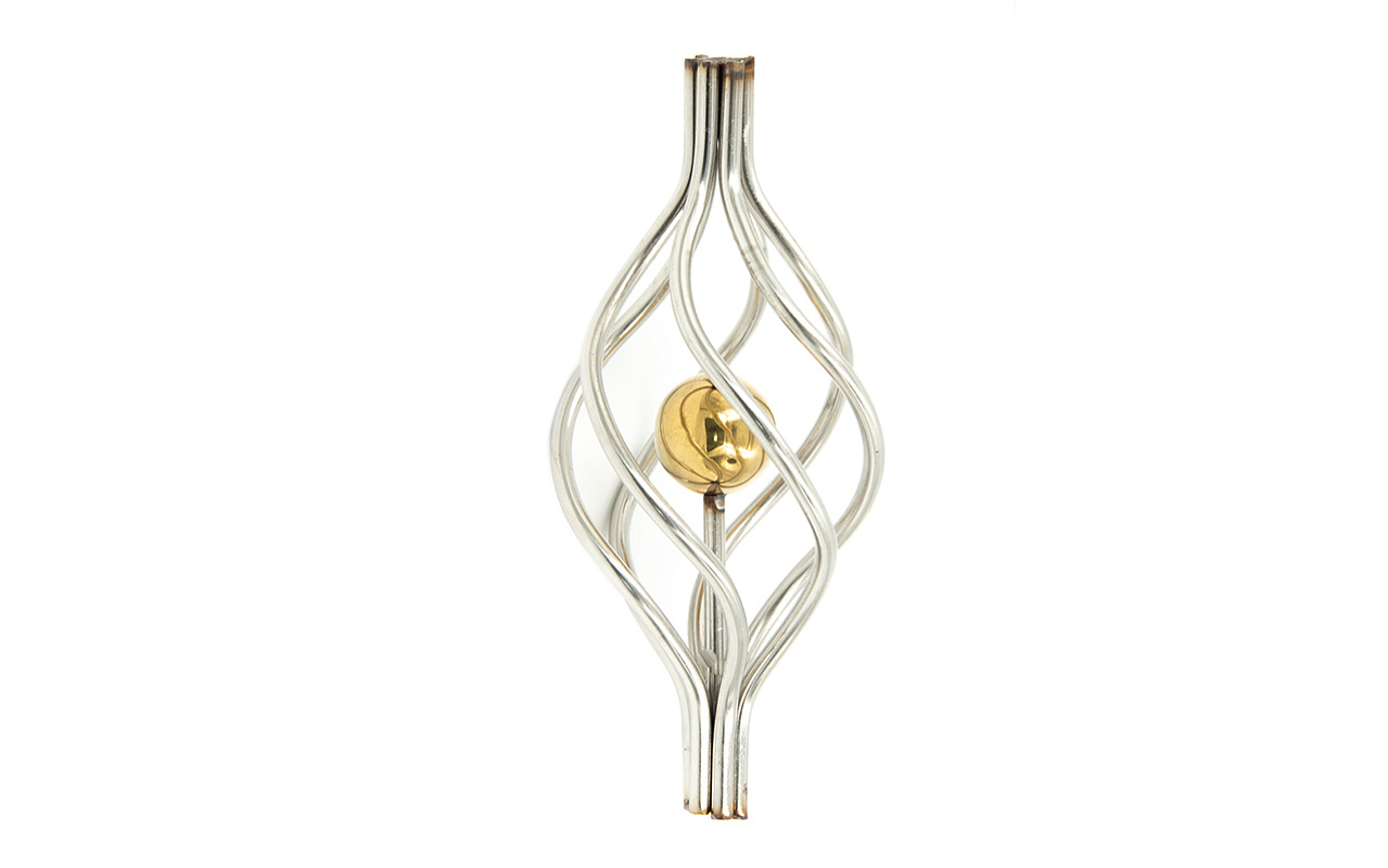 Декоративная вставка (корзинка) для стойки Ø25 мм, с золотым шаром. Деталь полированная, литая. Марка детали - AISI 304