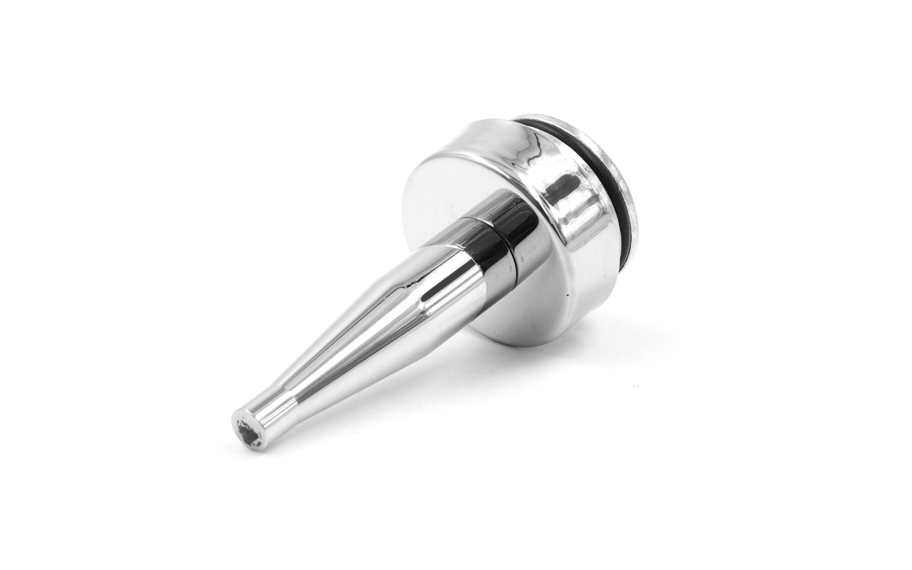 Наконечник палец (солдатик) с системой фиксации из алюминия в стойке диаметром Ø38.1 мм. Деталь полированная, нержавеющая, литая. Марка стали детали - AISI 304.