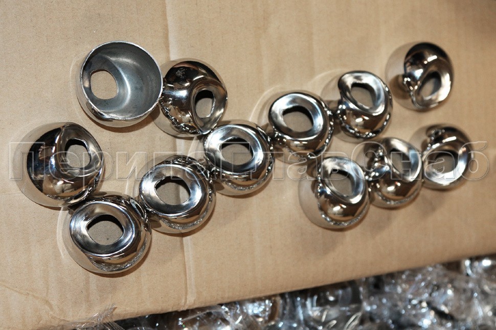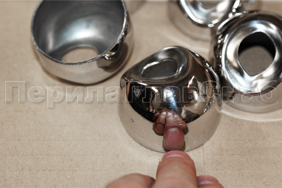 Наконечник штампованный (СПС) прямой 90° на трубу Ø42.4 мм, для поручня Ø50.8 мм, полированный, нержавеющий, AISI 304, 600Grit, k321