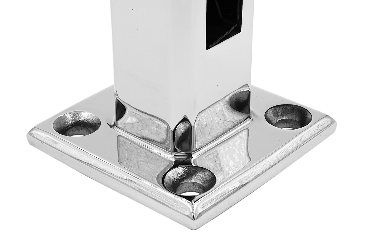 Стеклодержатель литой напольный, 50х50х160 мм, для стекла 16 мм, полированный, 600 Grit, без сверления. Марка стали - AISI 304. Так же вам понадобиться для крепежа потайной винт под шестигранник k601-19-120