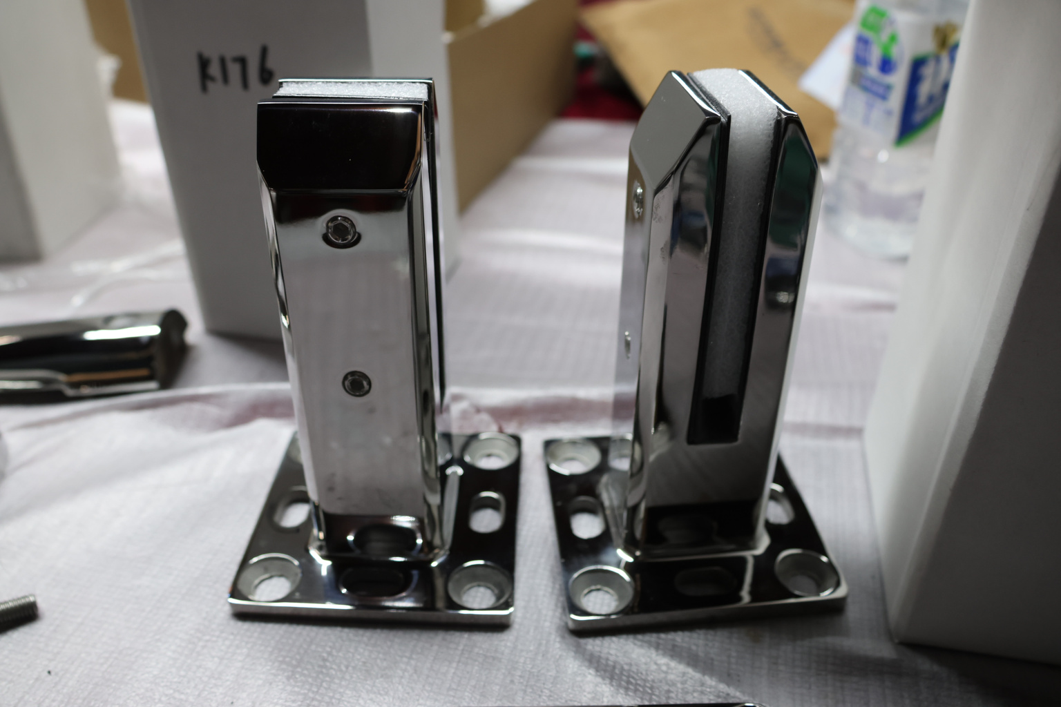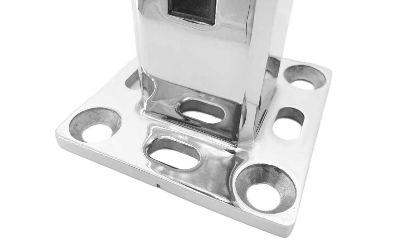 Стеклодержатель литой напольный квадратный зажимной, 45х50х160 мм, для стекла 10-12 мм, полированный, без сверления стекла (AISI 304). Так же вам понадобиться для крепежа потайной винт под шестигранник k601-19-120.