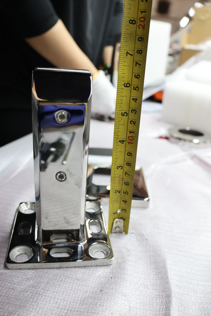 - позволяет создать ограждения без использования стоек, так как корпус нержавеющей детали монтируется прямо в пол.