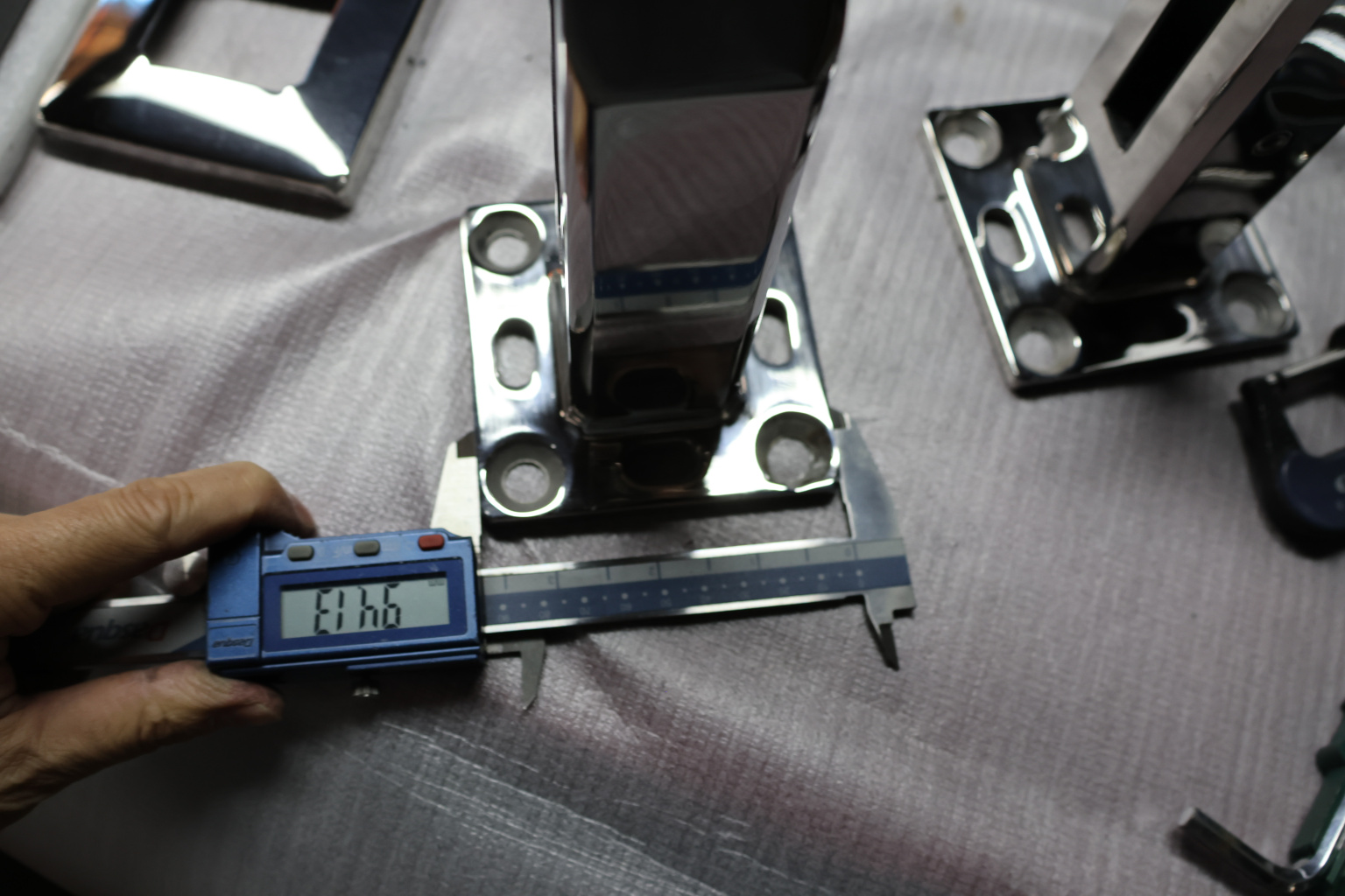 Стеклодержатель напольный 45х50х160 мм, для стекла 10-12 мм, литой, плоский, без сверления, нержавеющая сталь AISI 304, полированная k275-5