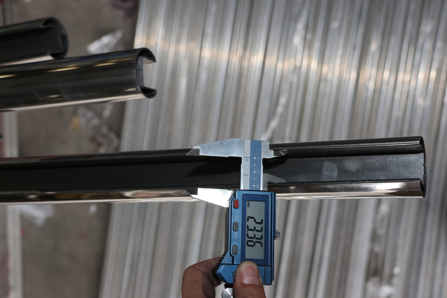 Труба Ø42.4 мм, с пазом 24х24, тройная полировка 800GRIT, (AISI 201) k820 купить в Нижнем Новгороде