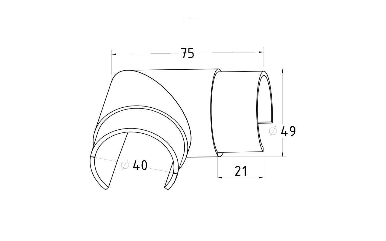 Отвод с пазом на трубу Ø48.3 мм, полированный (AISI 304) k237