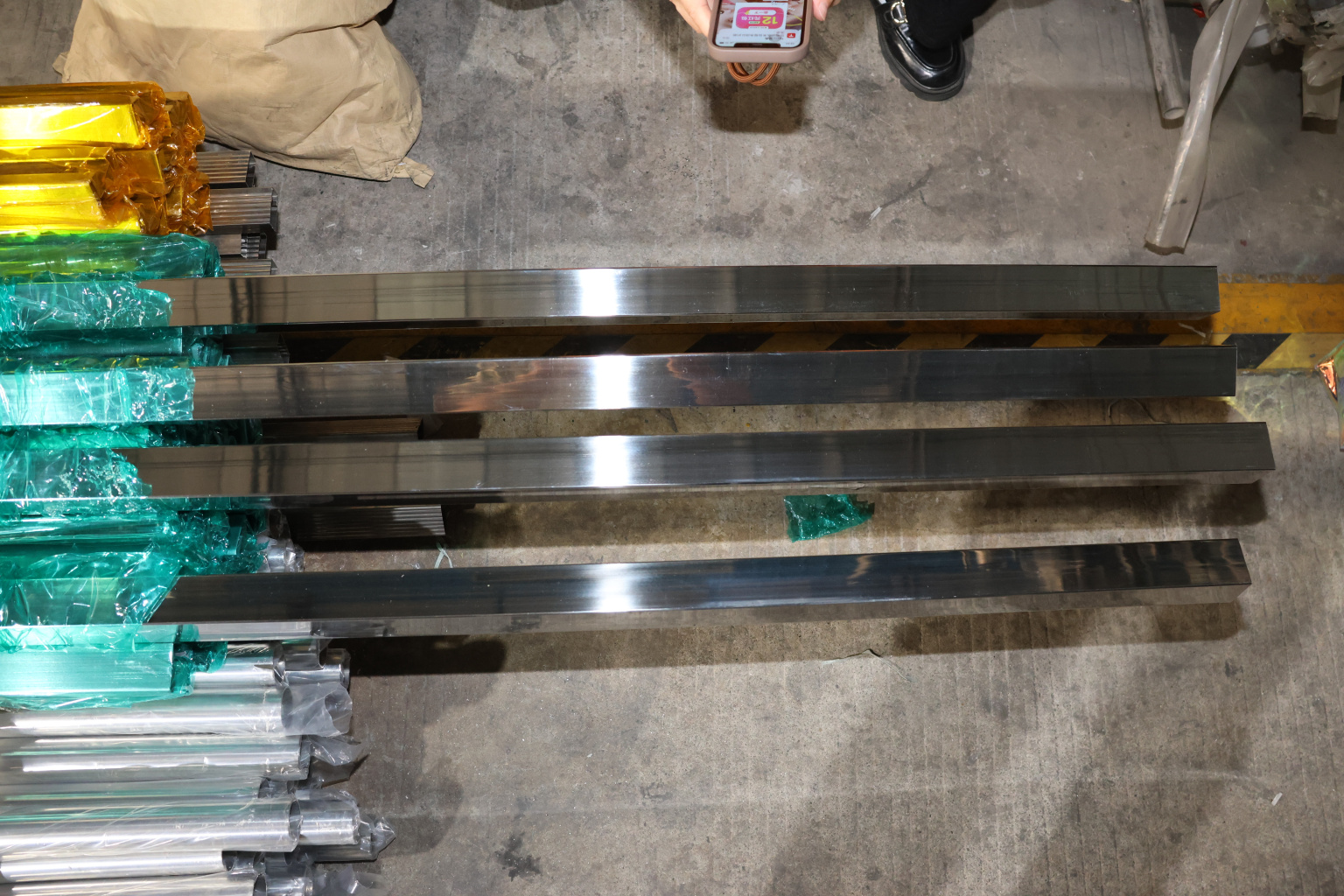 Труба 40х40 мм с пазом 24х24 мм под стекло, полировка, AISI 304 #600