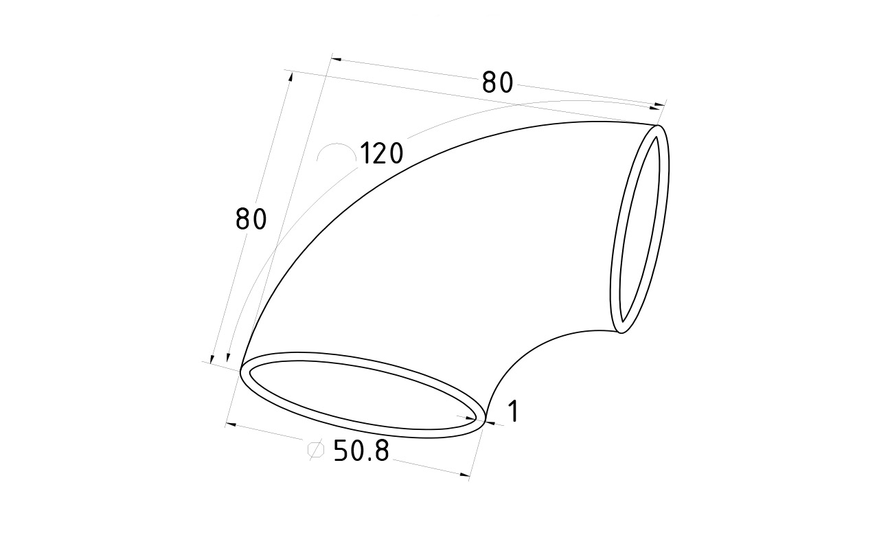 Отвод Ø50.8 мм, облегченный, полированный (AISI 201) k052-5