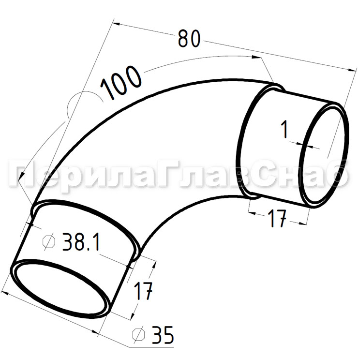Ø38.1 х1.5 мм, 90°длина дуги 100 мм