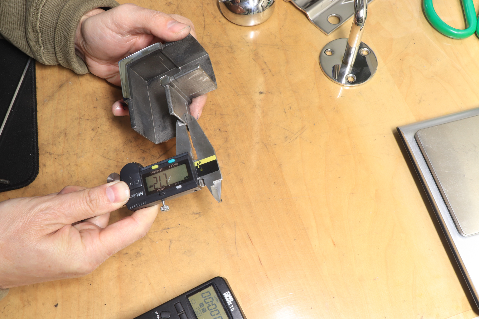 Отвод для поручня с пазом 40х40 мм. Деталь полированный, марка стали - AISI 304.