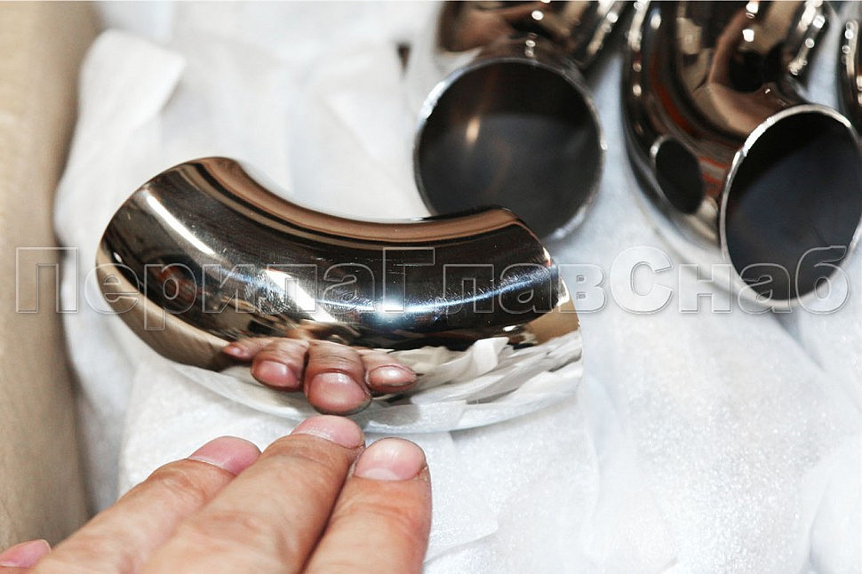 Стальной отвод предназначен для завязки нержавеющих перил лестничного ограждения под углом 90 градусов. Если нужно повернуть перила под большим углом, то на концах поручней свариваются сразу два нержавеющих отвода. Наша модель разработана специально для поворота ограждения на узких лестничных маршах. Ведь если попытаться создать короткий отвод самостоятельно, из традиционной длинной модели, то простым срезом лишнего сегмента этого сделать не получится. Ведь сечение среза станет овальным. А как состыковать два овала в разных плоскостях? Вот тут-то и понадобится именно наша модель! Что может быть проще и быстрей, чем сварить два идеально ровных круглых среза? Это же элементарно. Ну а если понадобится развернуть перила на широком марше, то и в этом случае наш отвод всегда пригодится. Ведь между двумя стальными деталями нужно сделать проставку из куска нержавеющей трубы необходимой по месту длины. Однако на техническом удобстве применения его удивительные свойства не заканчиваеются. Наоборот, нужно помнить и о его толщине стенки, которая простит огрехи даже неопытного сварщика. Ведь молодежь, не обладая навыками мастеров отрасли, первое время варит сталь с увеличенным расходом припоя. От этого стальные детали могут запросто прогореть. Но с нашим отводом этого никогда не случится, потому что толщина стенки выбрана ровно в 1.45 мм, что сделает вопрос стыковки его с трубой поручня простым и приятным. А что уж говорить о степени полировки нашего отвода из нержавейки? Она сделана совершенно зеркальной, на сегодняшний день детали и фитинги из нержавейки для перил выше 800 Grit просто не существует. Это самая лучшая полировка нержавеющей стали, которую только можно встретить на рынке. Значит, вам не придется переполировывать деталь и расходовать ценные материалы. А это уже существенная экономия сил и средств. Впрочем, если вам нужно завязать поворот стального поручня устройства для инвалидов или ограждения инвалидного пандуса по ГОСТу, то для этих целей лучше использов