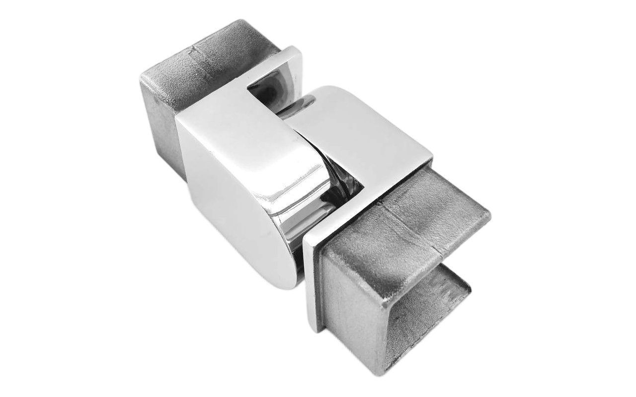 Отвод для поручня с пазом 40х40 мм, шарнирный, полированный. Марка стали - AISI 304