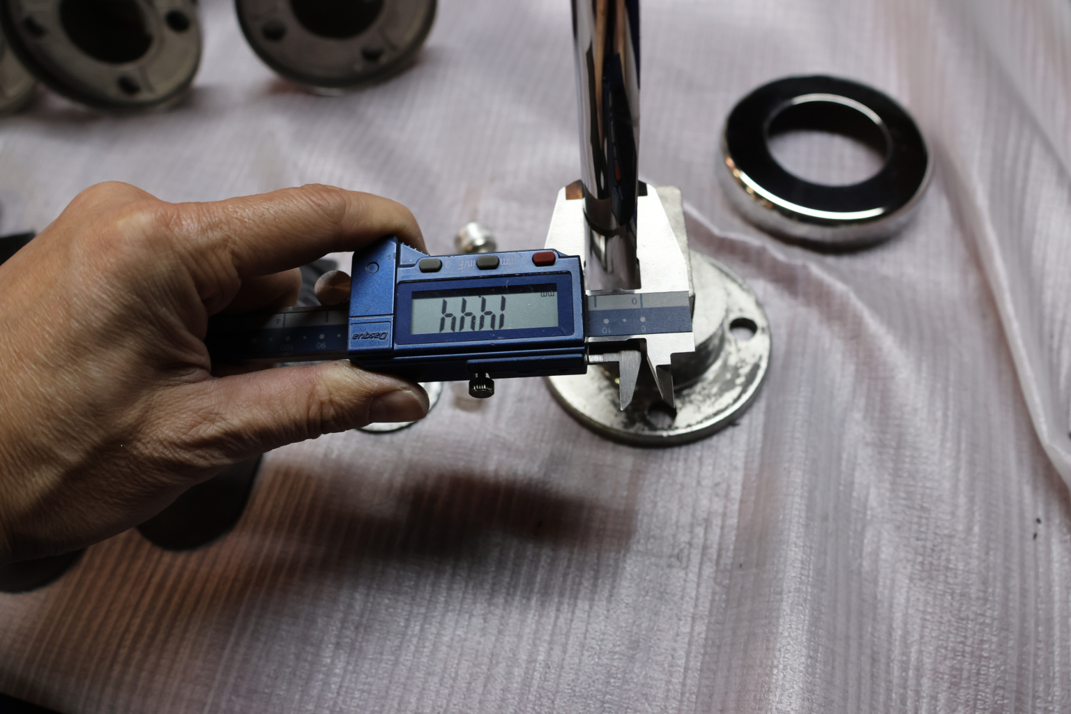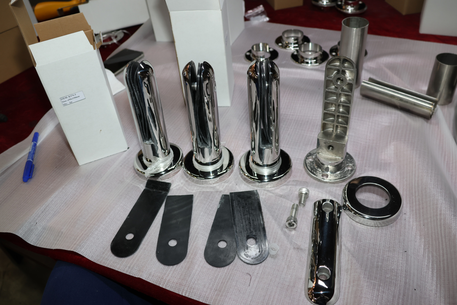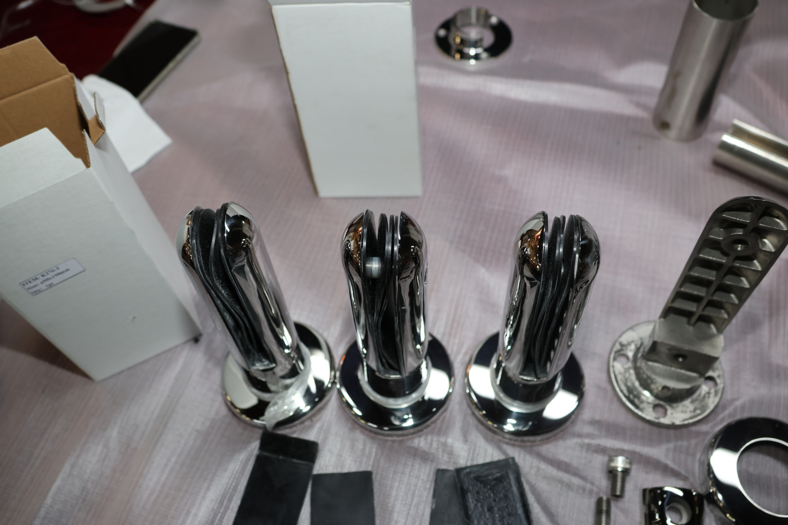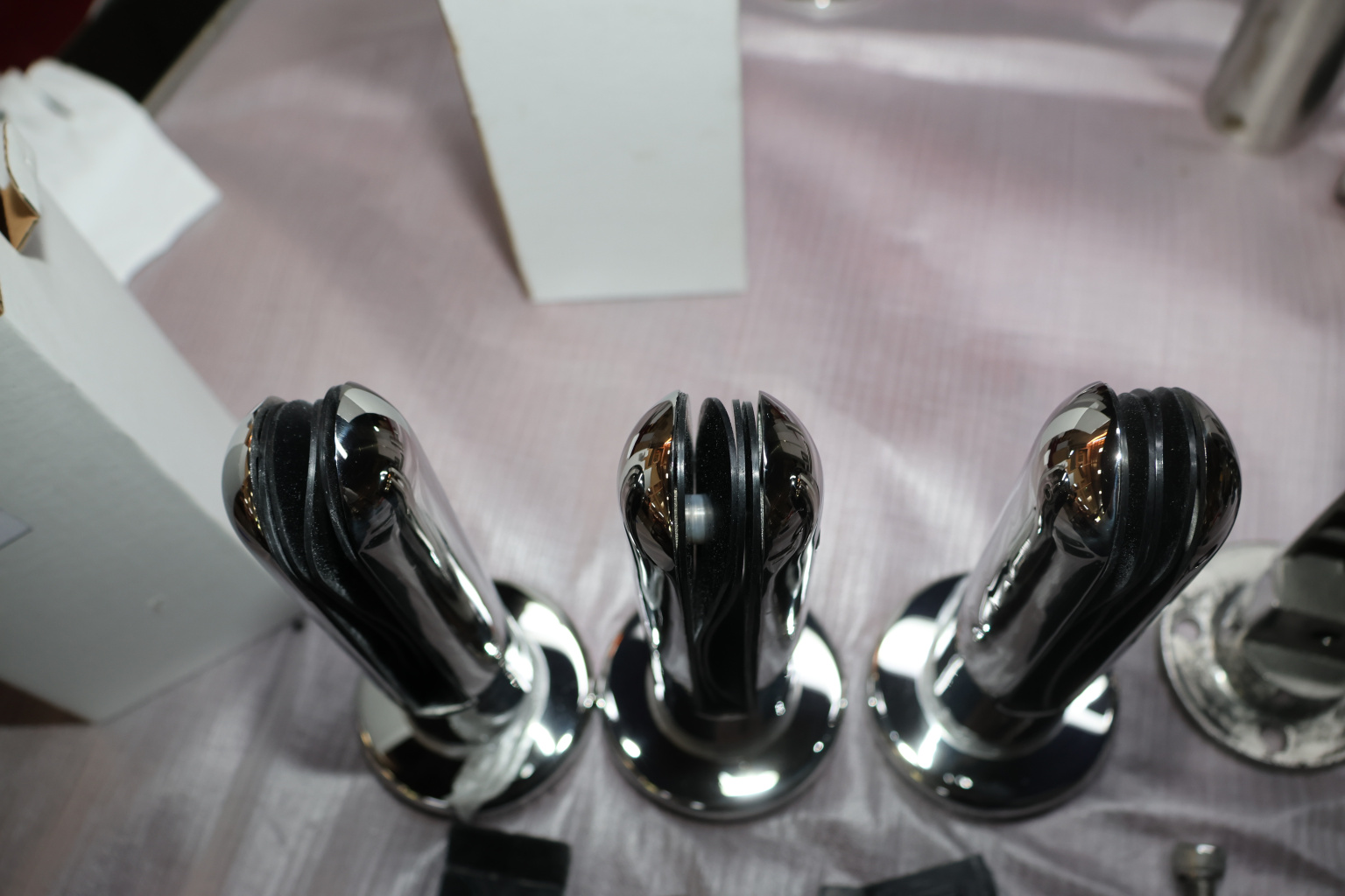 Стеклодержатель Ø50х10х18, шпилька М16х205 мм, для стекла 8-40 мм, AISI (201), с возможностью регулировки выноса до 65 мм, для торцевого крепления стекла, полированный, литой k277-3 купить в Нижнем Новгороде