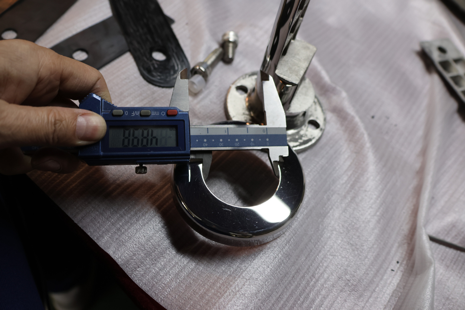 Стеклодержатель Ø50х10х18, шпилька М16х205 мм, для стекла 8-40 мм, AISI (201), с возможностью регулировки выноса до 65 мм, для торцевого крепления стекла, полированный, литой k277-3