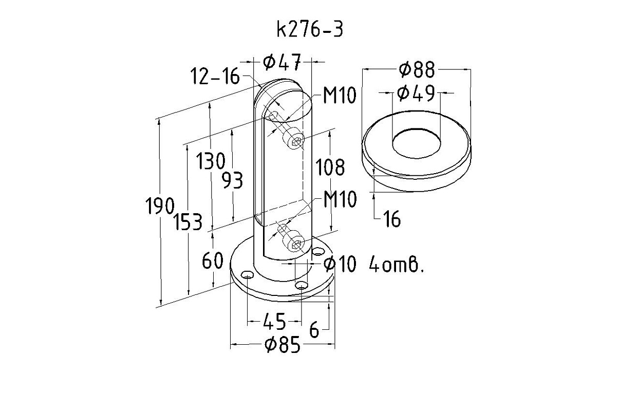 Стеклодержатель литой напольный, круглый, для стекла 12-16  мм, полированный (AISI 304) k176-2 купить в Нижнем Новгороде