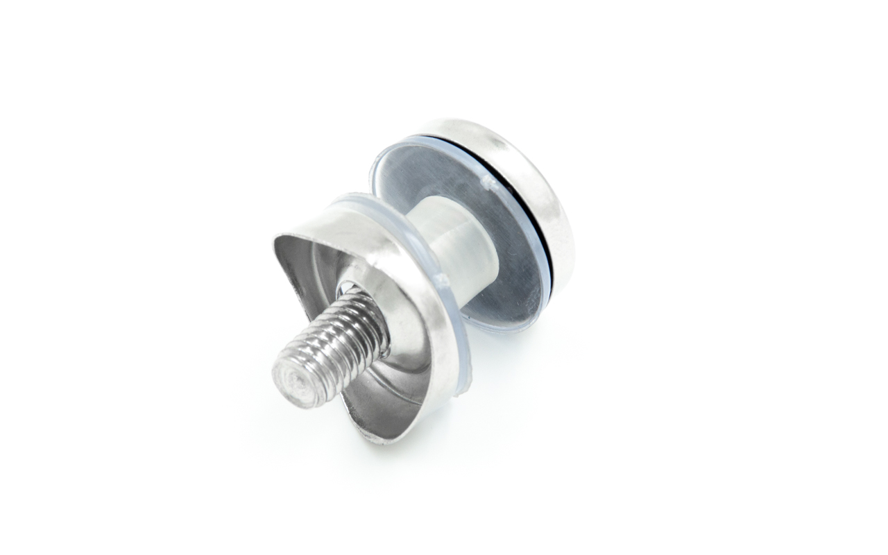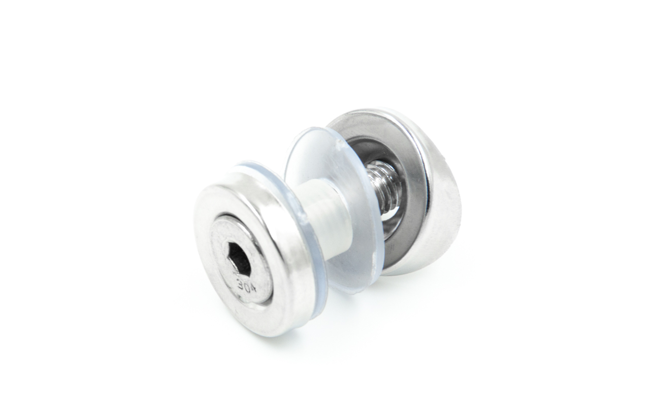 Ускоренная установка стекла в диапазоне толщин от 6 до 18 мм на круглой стойке из нержавеющей трубы Ø38.1 мм. Для крепления используется шпилька М8.