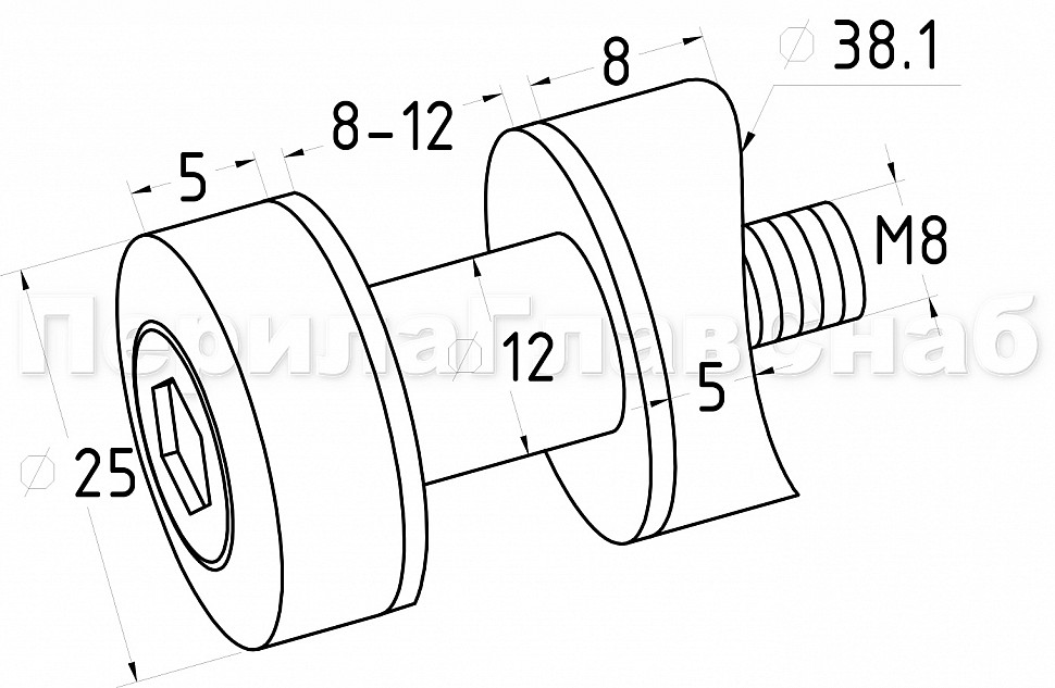 диаметр шайбы - 25 мм, под стекло 6-18 мм, отверстие в стекле Ø12-13 мм k940-5.0 шестигранник ULTRA поштучно 5.0 мм с ложе под трубу Ø38.1 мм