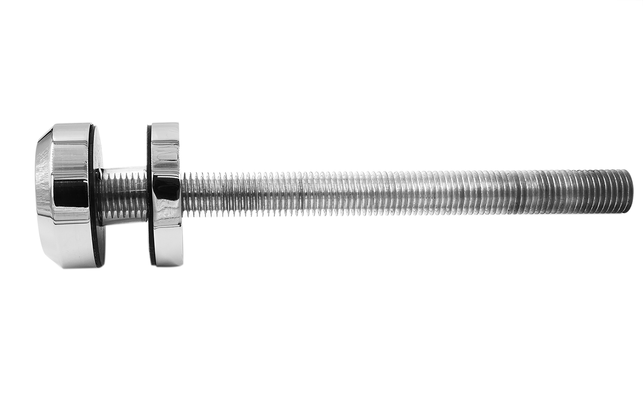 Точечный стеклодержатель для торцевого крепления несущего стекла в широчайшем диапазоне от 8 (4+4) мм до 40 (20+20) мм. Диаметр наружной (хрюшка) и внутренней шайб по 50 мм.