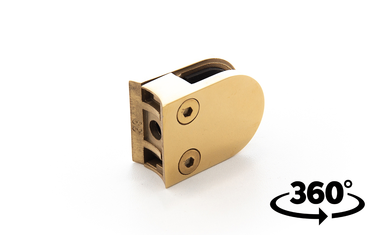 Стеклодержатель литой на трубу Ø38.1 мм, под золото, в комплекте с EPDM вставками под стекло 8 мм, дизайн - закругленный
