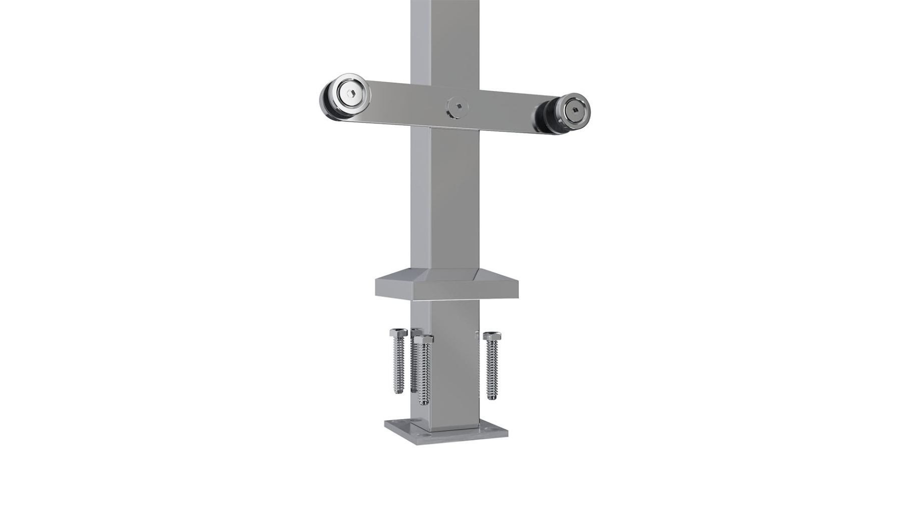 Стойка с торцевым креплением на фланцах, 60*60*1100 мм, с пластиной, для стекла 8-20 мм, шлифованная, AISI 304 k793