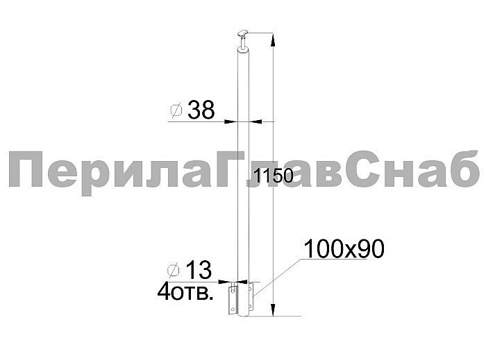 Готовая стойка Ø38,1 мм, с боковым крепежом и наконечником, высота 1150 мм, полированная (AISI 304) k704