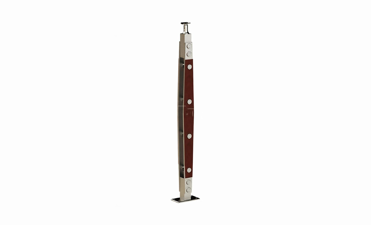 Готовая стойка Ø38,1х950 мм деревянная, со вставками из нержавеющей стали 2х100 мм с 2 стеклодержателями k741-2-R купить в Нижнем Новгороде
