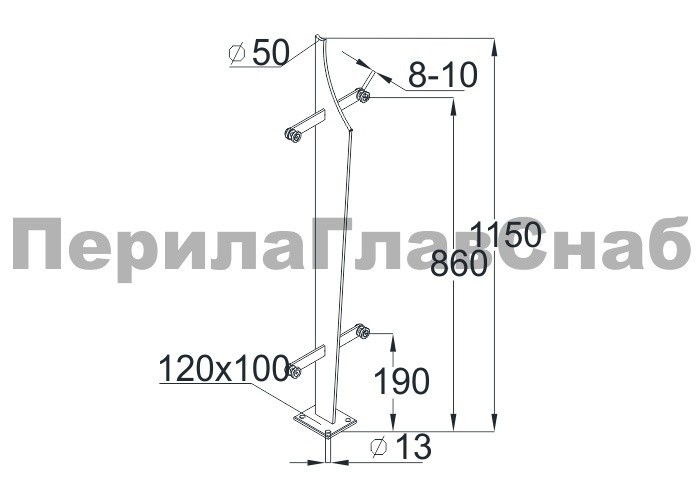 Готовая стойка Ø38,1х950 мм деревянная, со вставками из нержавеющей стали 2х100 мм с 2 стеклодержателями k741-2-L купить в Нижнем Новгороде