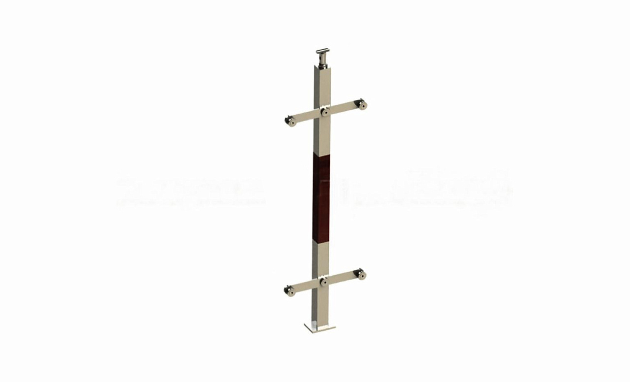 Стойка эксклюзивная квадратная с деревянной вставкой и двумя спайдерными стеклодержателями, крепление в пол, регулируемый ложемент (aisi 304)