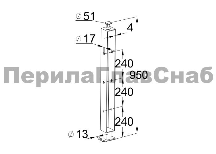 Стойка эксклюзивная квадратная с 3 отверстиями под ригель, крепление в пол, регулируемый ложемент (aisi 304)