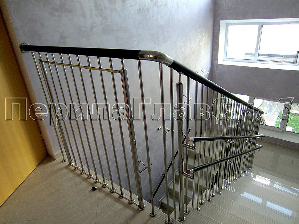 Из общей массы по сути типовых проектов подобного рода данная работа отличалась тем, что мы применили в ограждении нетривиальный подход к выбору материалов по просьбе заказчика: не только нержавеющую сталь, но и дерево. Это позволило создать неповторимое очарование теплого деревянного поручня на холодном металле частокола тонких стоек из нержавеющей стали.