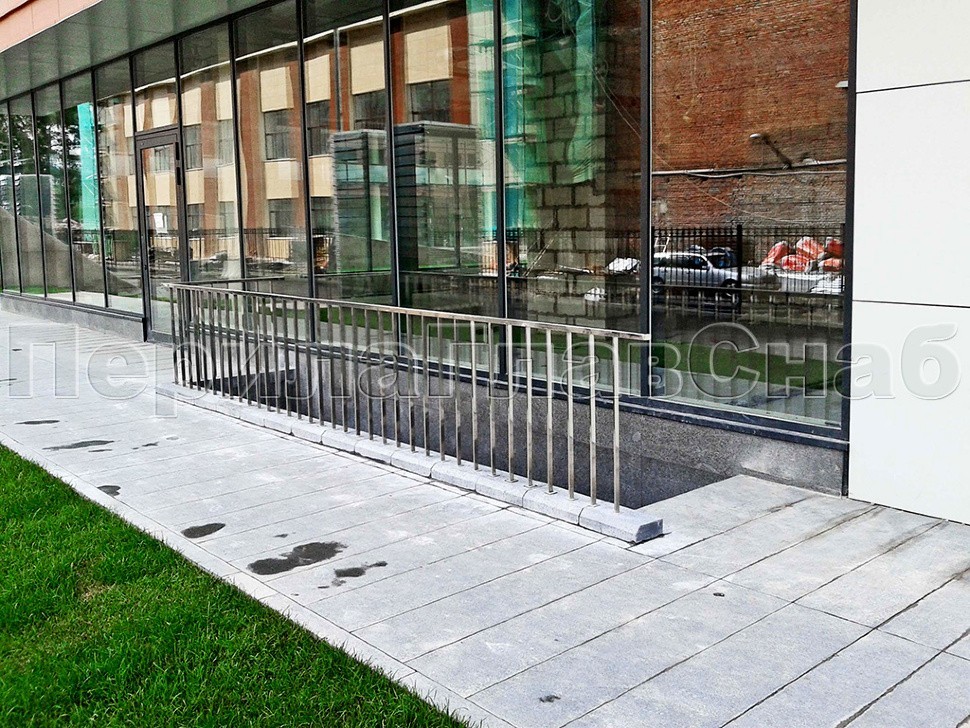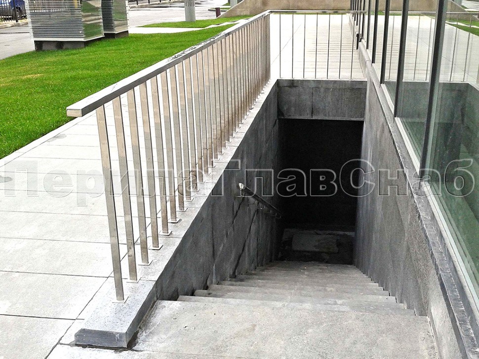 Также для бизнес-центра компания «ПерилаГлавСнаб» установила ограждения и поручни для лестниц, ведущих в подвальные помещения. Дизайн этих ограждений также отлично вписался в общий архитектурный ландшафт.
