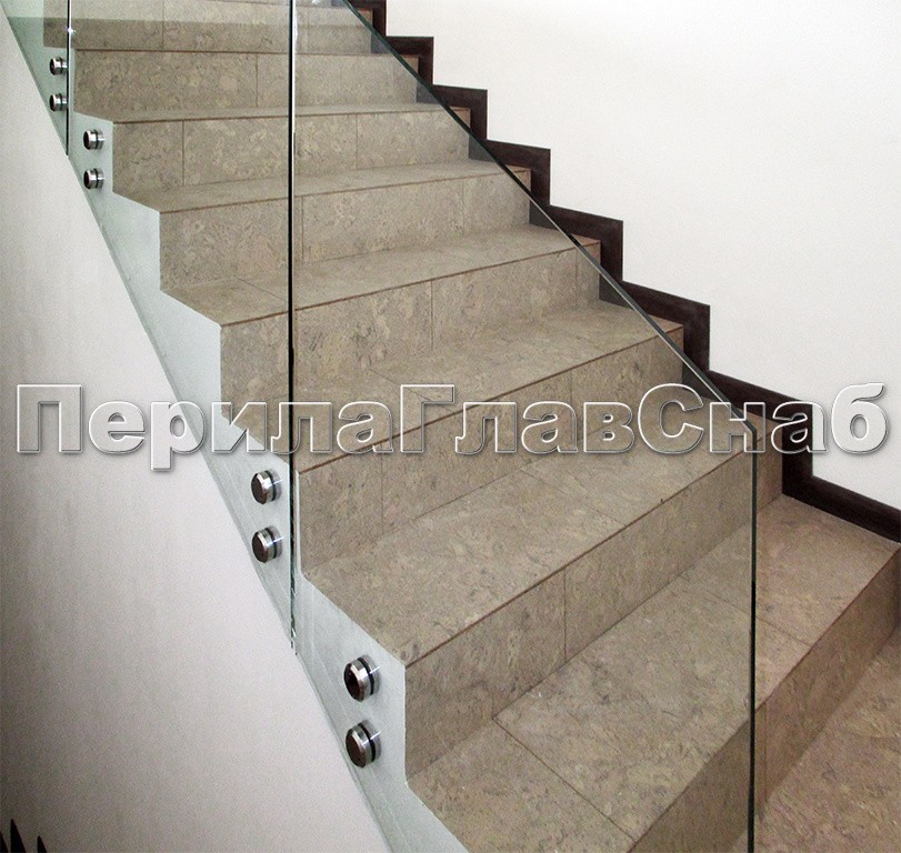 Стеклянные перила установлены на боковом точечном креплении (из полированной нержавейки).