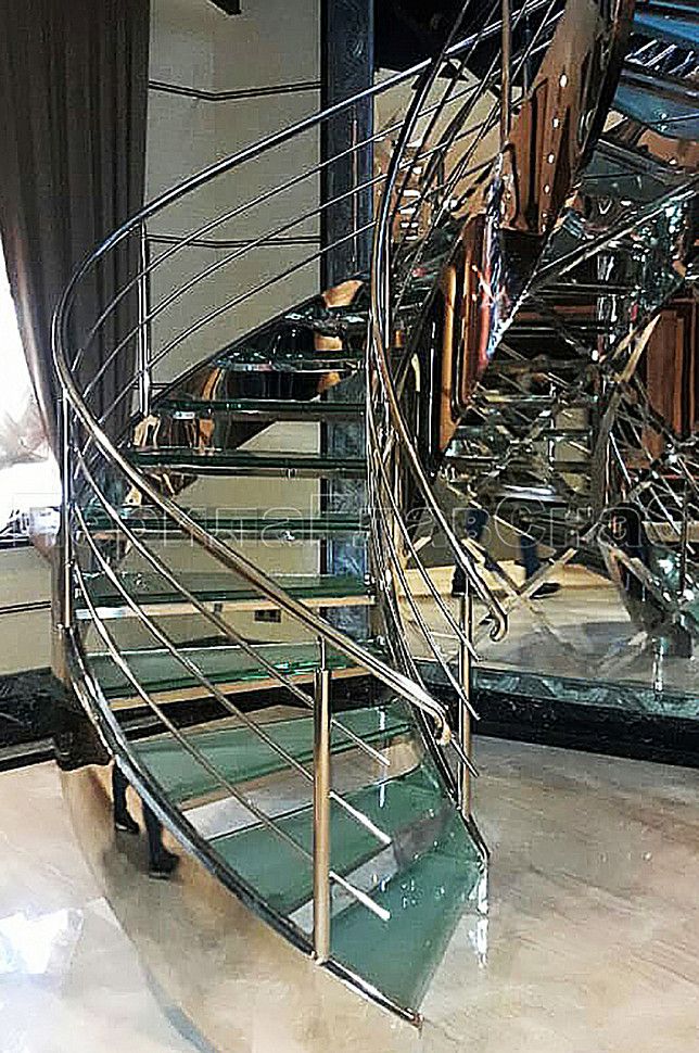Автосалон всегда привлекает своим внешним видом, и здесь конечно же, должно быть все на высшем уровне, в том числе и лестница с ограждениями. Мы сделали достойную работу, установив ограждения, комбинируя стеклянные ограждения и станадртные 3-х ригельные.