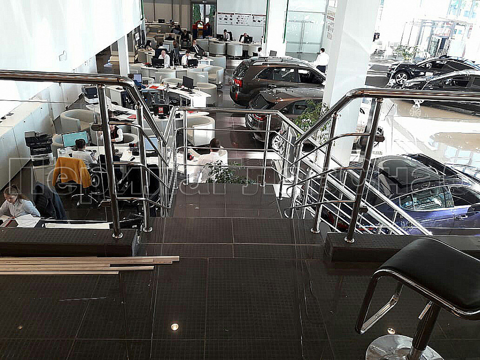 Блестящие шикарные перила установили в автосалоне Автогермес.