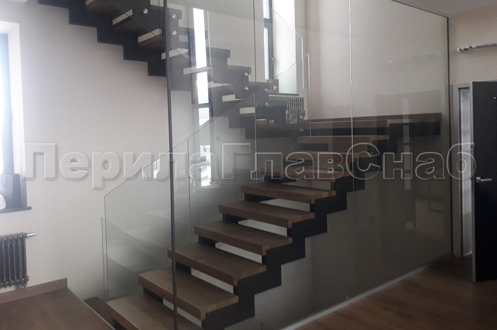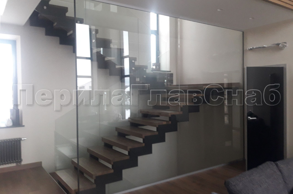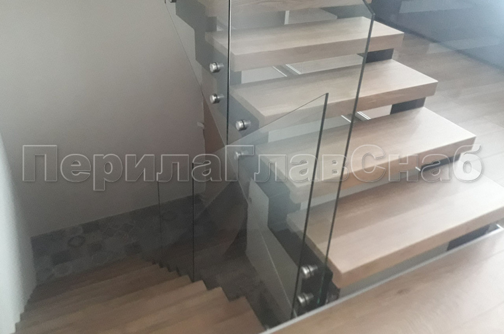 При завершении строительства дома, перед заказчиком встал вопрос о выборе ограждений в частный дом, находящийся в коттеджном поселке «АРТЭК». С просьбой помочь в выборе ограждений, в нашу компанию обратился непосредственно сам заказчик. Основным пожеланием заказчика было: ограждения должны быть прозрачными и в то же время безопасными. Мы предложили изготовить и смонтировать Цельностеклянные ограждения. Ограждение второго света имели следующий конструктив. Алюминиевый анодированный профиль, закаленное стекло толщиной 10мм с евро кромкой. Сверху на стекло был установлен поручень из массива дуба с пазом на стекло по индивидуальному размеру 60*40мм. Покраску поручня мы рекомендовали заказчику осуществить в той же компании, которая изготавливала декоративную деревянную отделку балками торца второго света.   На лестницу установили закаленное стекло толщиной 10мм, крепление стекла к косоуру лестницы было выполнено с помощью точечных креплений из шлифованной нержавеющей стали. В процессе монтажа ограждений у заказчика возникла потребность в изготовлении цельностеклянной перегородки. Так как наш профиль не ограничен одними лишь перилами, мы предложили свои услуги по установке цельностеклянной перегородки что сэкономило время и бюджет заказчика. Перегородка была выполнена из закаленного стекла толщиной 12 мм. Стекло крепилось через зажимной профиль в пол и потолок, в потолке предварительно была установлена закладная, для надежного крепления профиля. Так как полы были с подогревом, нам понадобилась схема укладки теплого пола, для того чтобы избежать повреждения кабеля нагрева при монтаже профиля. Работы по изготовлению и монтажу сорока метров погонных ограждений под ключ, были выполнены в течении двадцати пяти рабочих дней. В целом ограждения получились визуально легкими и зрительно не отягощали конструкцию лестницы.