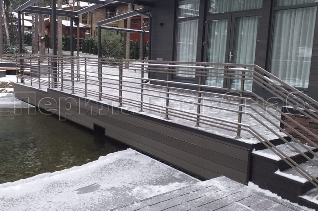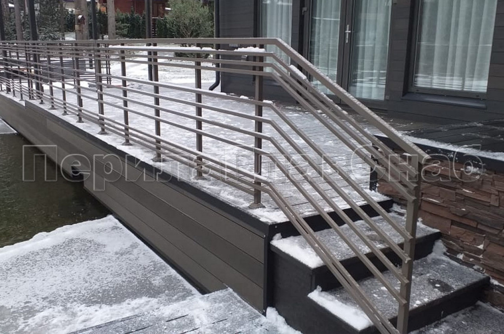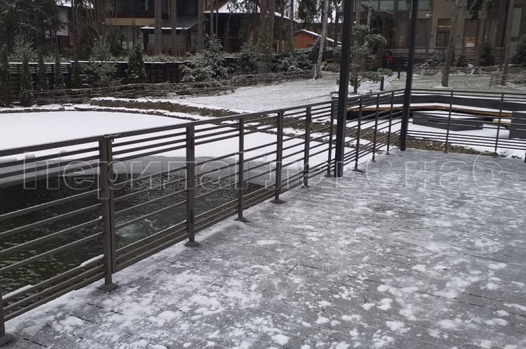К нам в компанию обратился заказчик, с просьбой помочь изготовить и смонтировать тридцать пять погонных метров ограждений в частном доме, находящегося в коттеджном поселке класса De Luxe «Променад». Чтобы ограждения вписывались в общую концепцию экстерьера участка, мы предложили заказчику покрыть ограждения порошковой краской по каталогу Ral. А, для того чтобы избежать в дальнейшем коррозии металла мы использовали трубу и комплектующие из шлифованной нержавеющей стали. На шлифованную поверхность порошковая краска ложиться равномерно и помогает избежать, вздутия и в дальнейшем отслоения краски от металла. Для согласования с заказчиком конструктива и общего вида ограждений, нашим конструктором был разработан чертеж. Чертеж дает возможность заказчику понять где и как у него будут установлены перила и в случае возникновения дополнительных пожеланий внести корректировки до начала монтажа. Конструкция ограждения была выполнена из профильной трубы квадратного сечения, стойки и поручень труба 30*30мм, заполнение между стойками труба 20*20мм. Покраска порошковой краской должна производиться в заводских условиях с соблюдением всех технологических нюансов, в покрасочной камере.  Так как покрасочная камера имеет определенные размеры то для этого необходимо было разделить ограждения на секции. Работы по изготовлению ограждений проводились в несколько этапов, первым этапом был монтаж секций ограждений на объекте, затем его демонтаж для транспортировки в покрасочную камеру, после покраски секции доставлялись на объект для дальнейшего монтажа. Места сварки секций были зачищены, зашлифованы и подкрашены вручную, что никак не испортило внешний вид ограждений.  Работы по изготовлению и монтажу ограждений под ключ, были выполнены и сданы в течение тридцати рабочих дней.