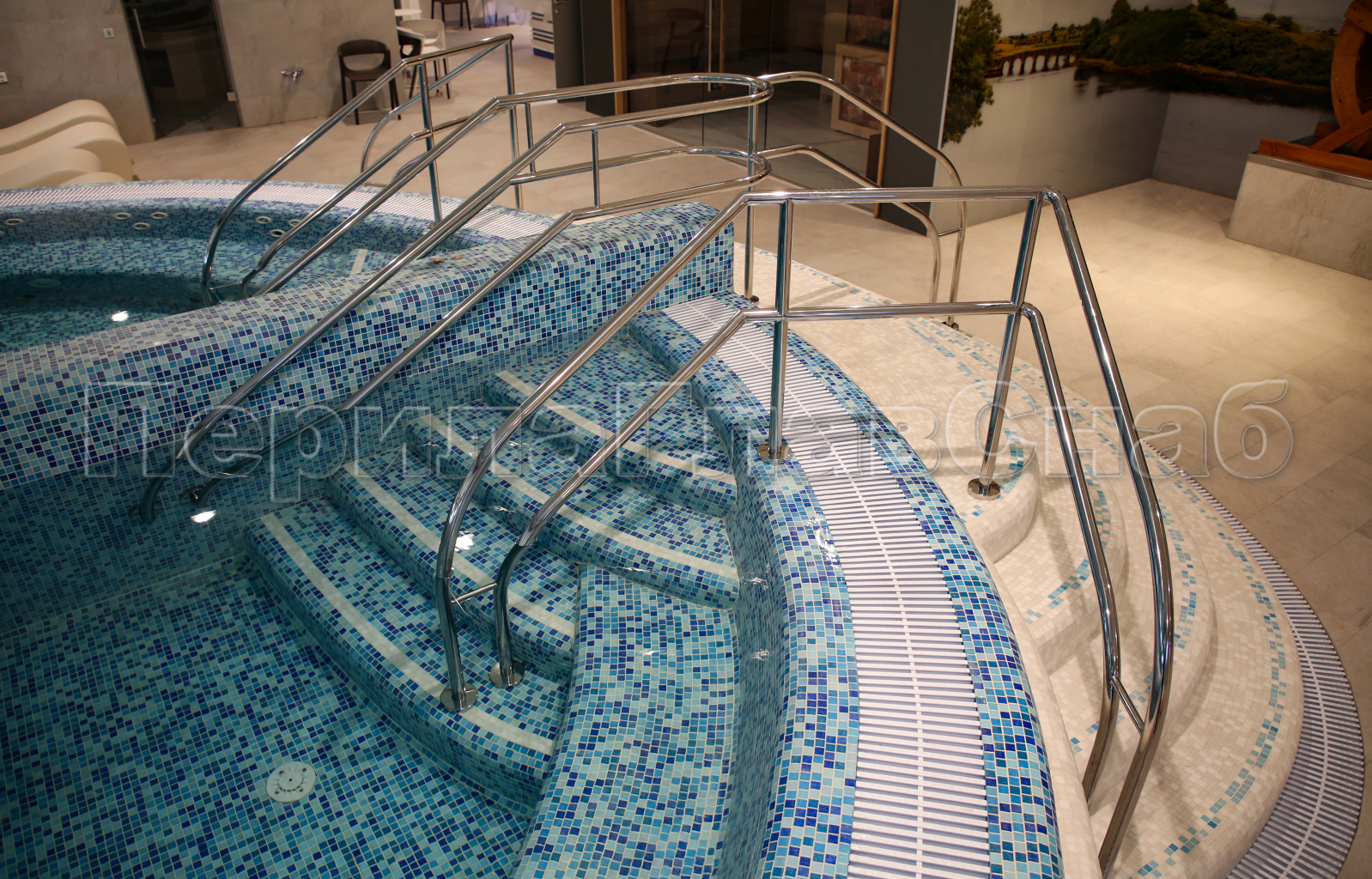 1) Поручни и ограждения должны быть выполнены из высоко коррозионно-устойчивого материала, так как контактируют с агрессивной средой-хлорированной водой.