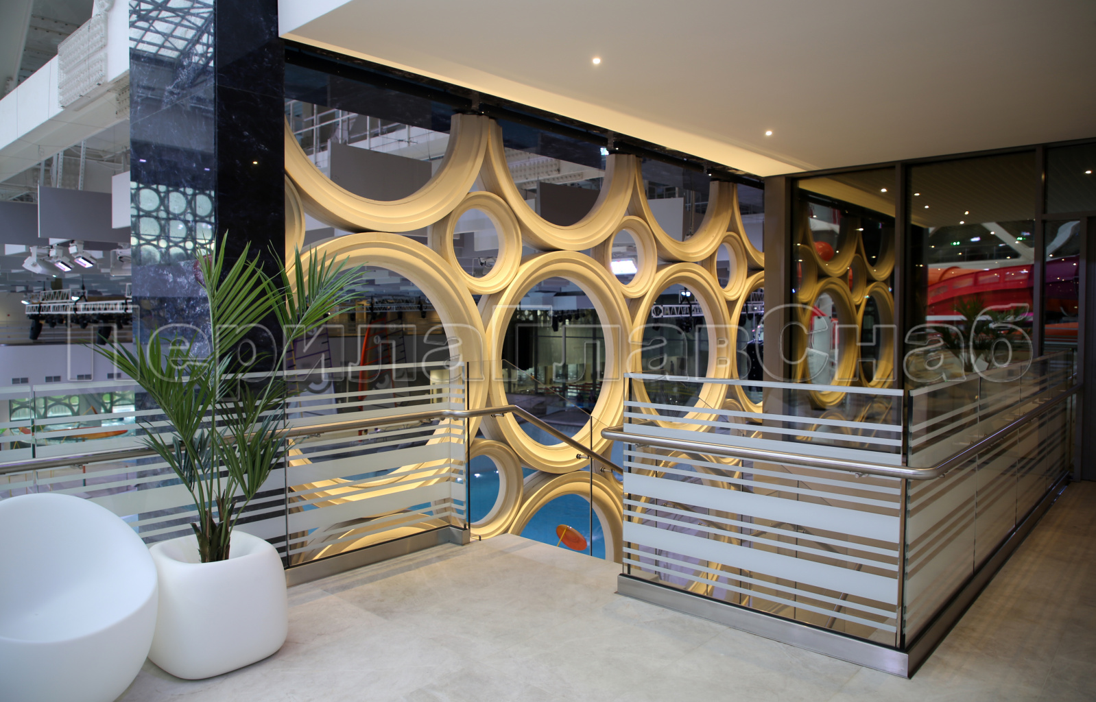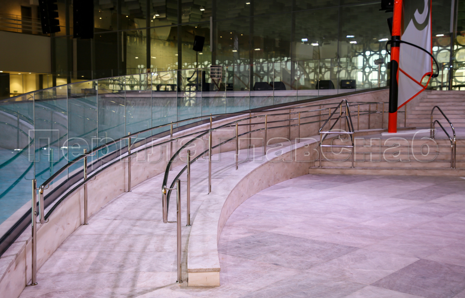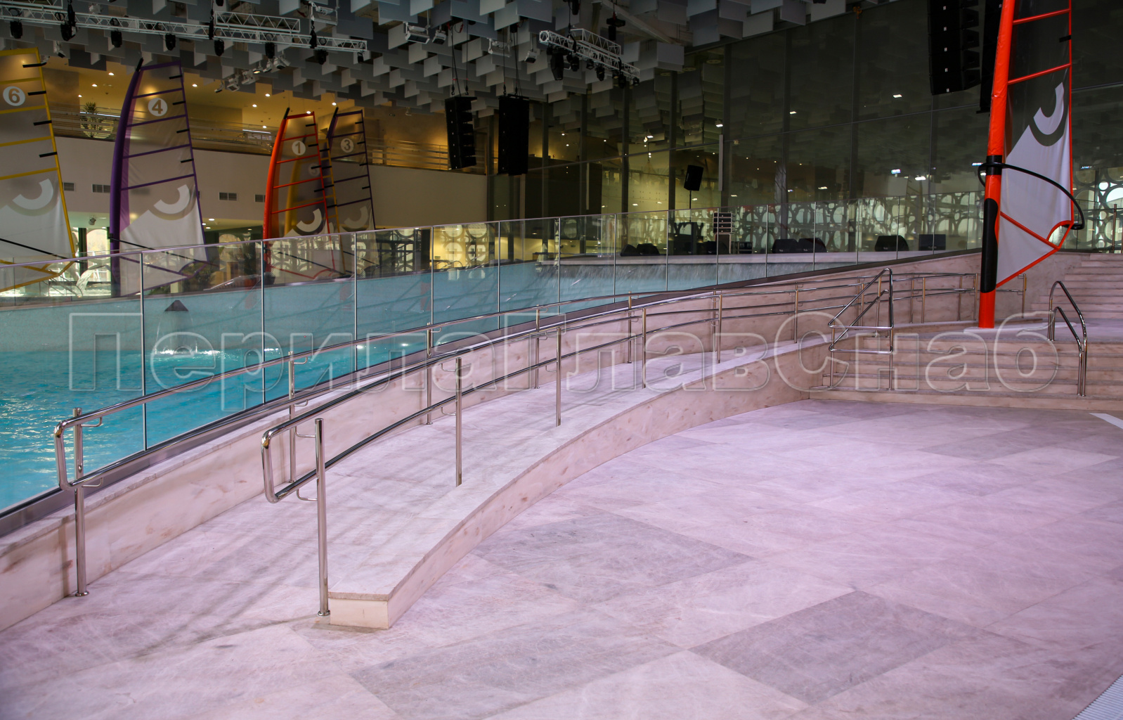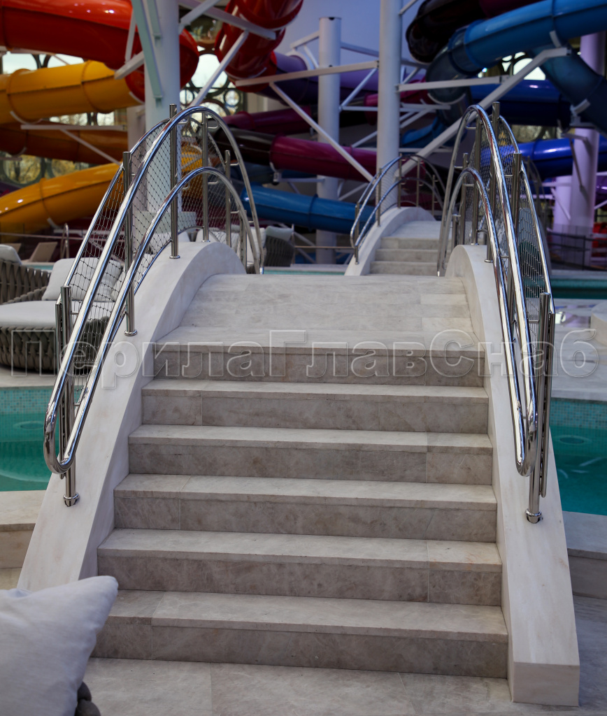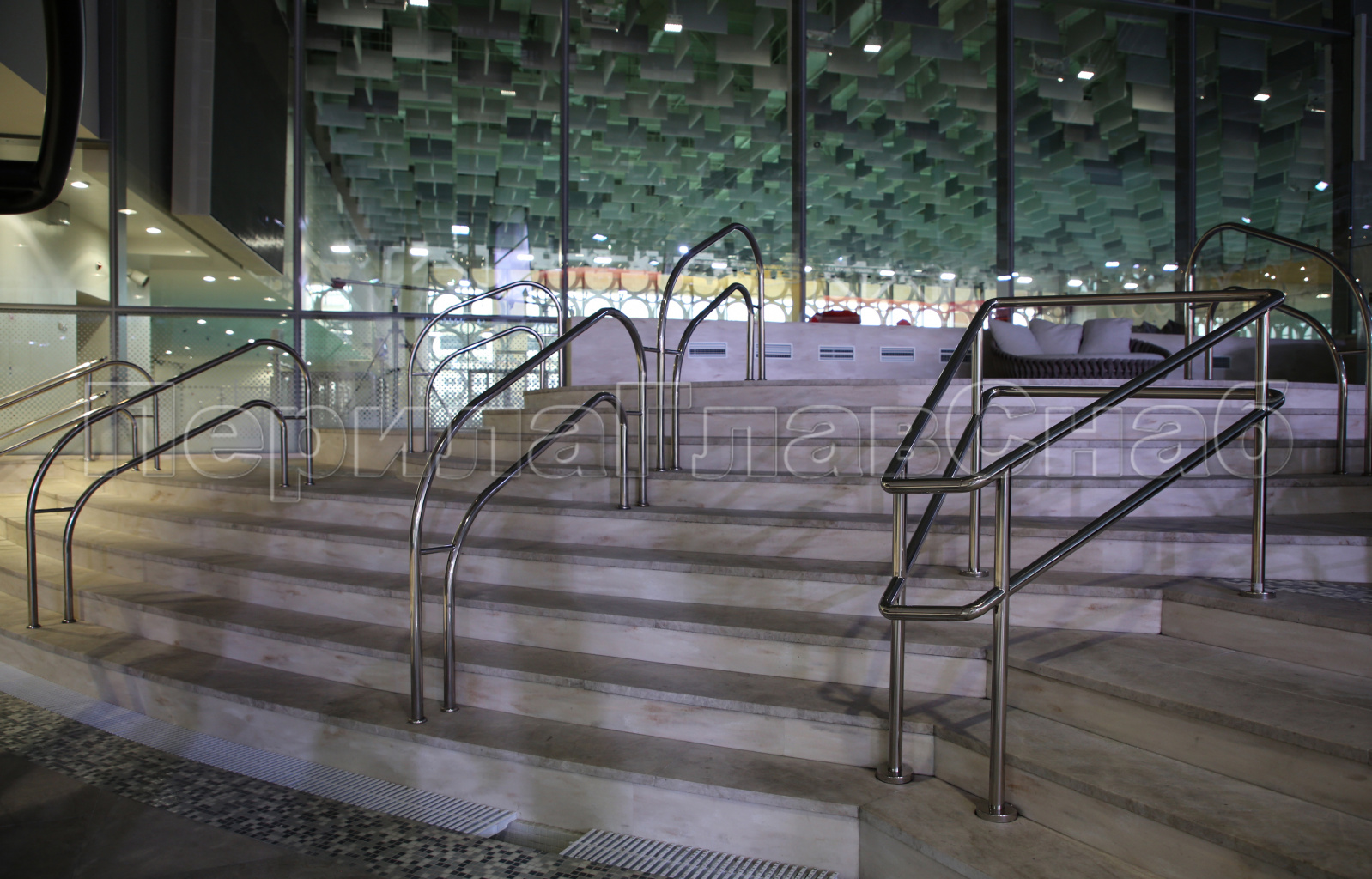 2) Ограждения и поручни должны быть безопасными и антивандальными в связи с тем, что на данном объекте ожидается большое количество посетителей разных возрастов, вместимость Аквакомплекса 10 000 человек.