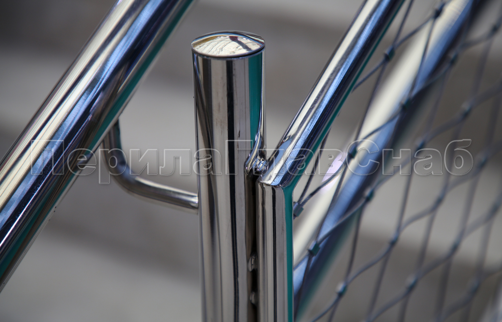 Так же на данном объекте нами были установлены ограждения из полированной нержавеющей стали конструктив которых состоял из стойки диаметром 38мм, двойного поручня такого же диаметра, завязанного между собой с заполнением между стоек сеткой. Сетка была смонтирована точечной сваркой. Каждый пучок тросов приваривался после натяжения к металлической конструкции, что потребовало кропотливой и трудоемкой работы монтажников. Все сварные швы ограждения так же были зачищены и заполированы.