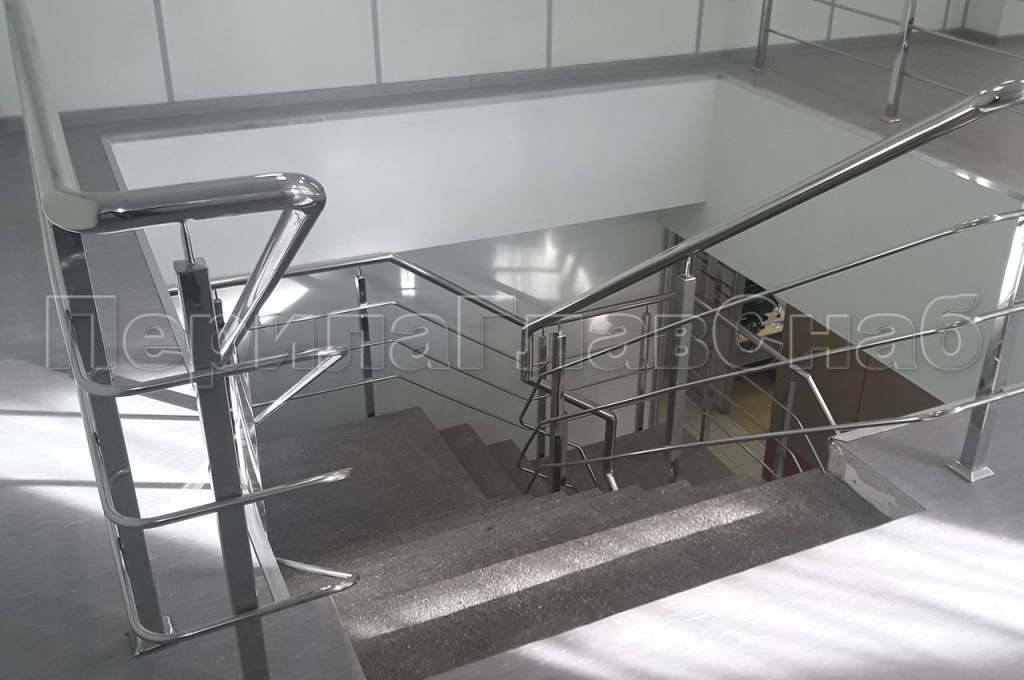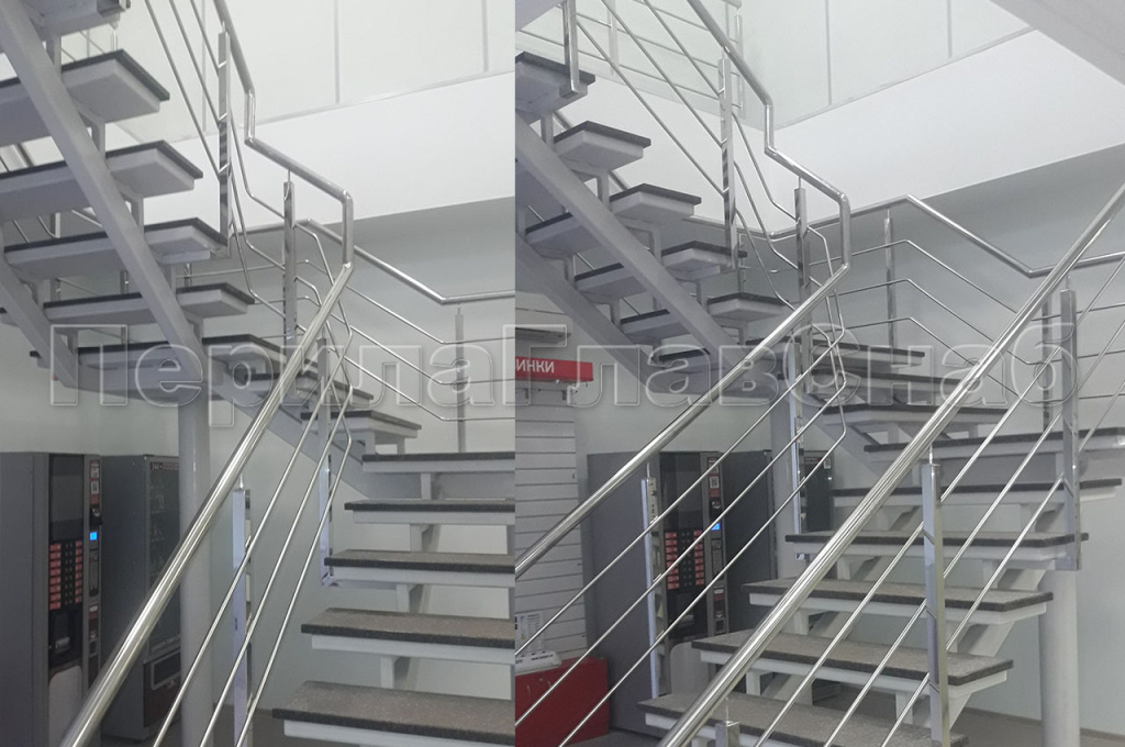 В связи с реконструкцией офисного помещения, находящегося в поселке возникла потребность в изготовлении и монтаже лестницы, высотой четыре метра, с первого на второй этаж, с двумя промежуточными площадками. К нам в компанию обратился заказчик за помощью в решении этой задачи.  На первом этапе для моделирования и составления расчетов лестницы, нашим конструкторским отделом был разработан, проект на данную лестницу. После согласования проекта с заказчиком, приступили к изготовлению и монтажу лестницы. Конструкция косоуров и площадки, выполнены из профильной трубы марки стали 3. Каркас ступени и площадки был сформирован из листа в виде корыта, для последующей заливки их бетоном. Вся конструкция лестницы сварная с последующей зачисткой швов всего металлокаркаса, шпатлевкой, грунтовкой и покраской пульверизатором по каталогу Ral. Ограждения на лестницу были выполнены из полированной нержавеющей стали. Стойки перил изготовлены из профильной трубы 40*40мм, крепились к косоуру лестницы на сварку. Поручень из трубы диаметром 50 мм крепился к стойке через наконечник штырь на сварку, поручень завязан по всей длине лестницы. Заполнение между стойками ригельное из трубы диаметром 16 мм, ригель крепился к стойке сваркой снизу. Все сварные швы ограждения были зачищены и заполированы. С задачей справились. Работы по изготовлению и монтажу лестницы и перил, были выполнены в течение шестидесяти рабочих дней.