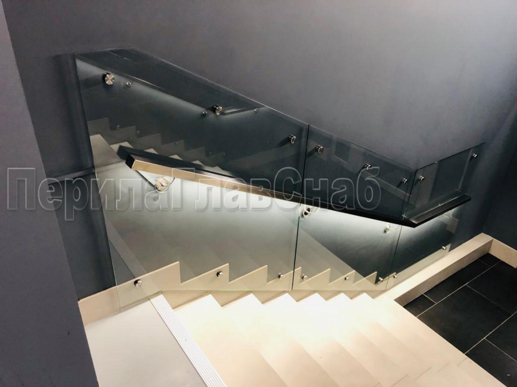 Конструктив:  профильная  труба  40х40 мм с  пазом  и встроенной  ЛЭД подсветкой, пристенные  держатели, стекло