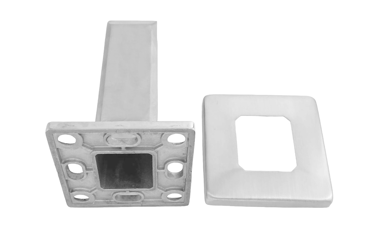- позволяет создать ограждения без использования стоек, так как корпус нержавеющей детали монтируется прямо в пол.