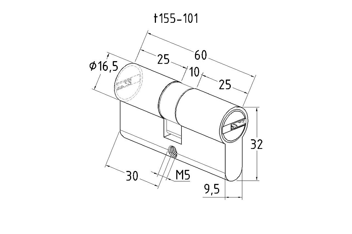 Личинка латунная 30х30 мм для замка t155 ключ-ключ